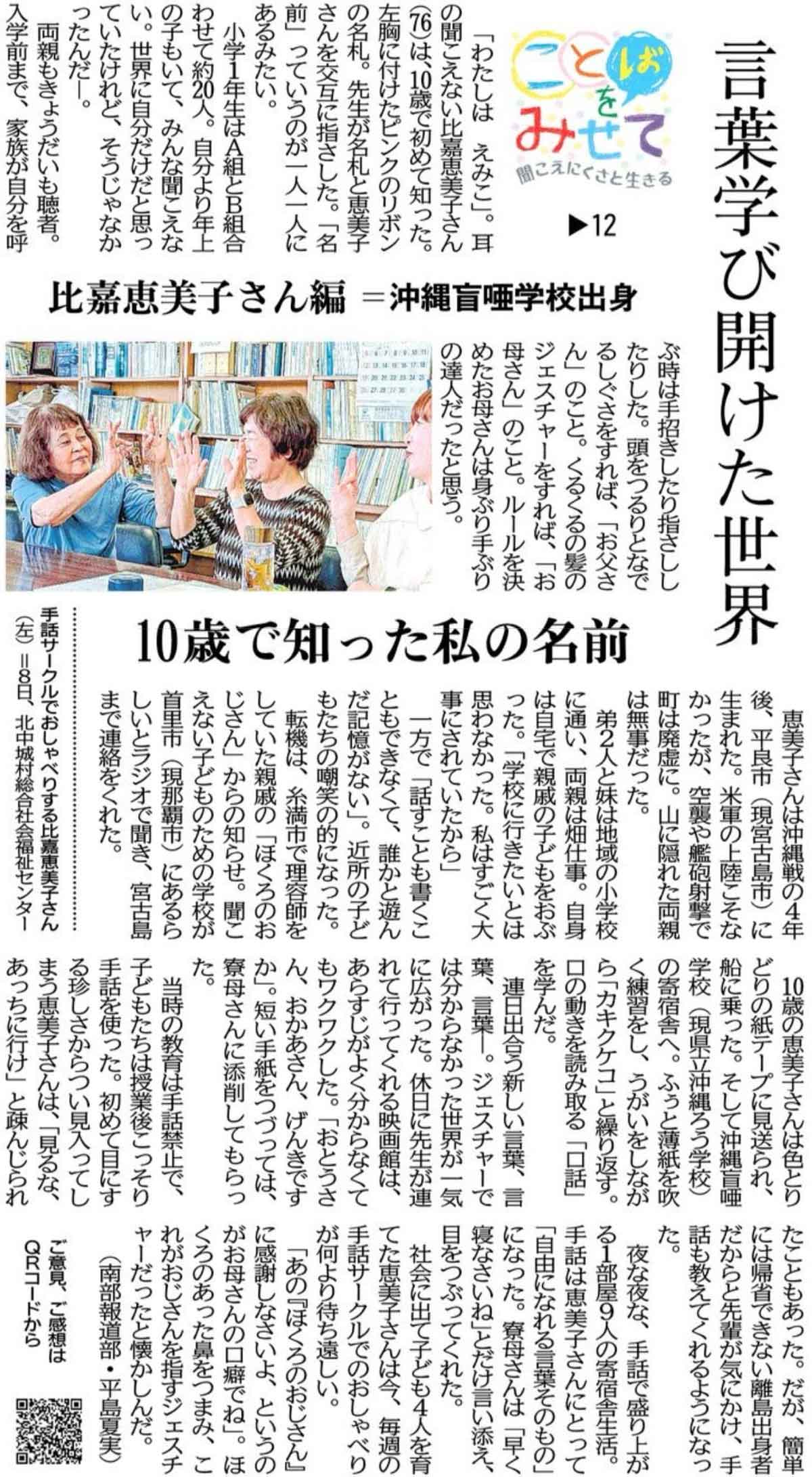 沖縄タイムス掲載-言葉学び開けた世界- 2026 4/18 2026年4月17日沖縄タイムスに掲載されました。 お知らせ 新聞 よかったらシェアしてね! URLをコピーしました! 沖縄タイムス掲載-トイレットペーパー32袋贈る- 沖縄タイムス掲載-年重ね通い合う手話-
